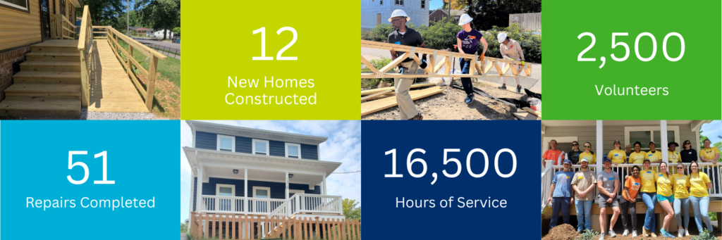 We created 12 new affordable homeownership opportunities. With the dedication of 2,500 volunteers who provided 16,500 hours of service, we completed a seven-home micro-community on N Plum Street and are making great strides on the 10-home Mount Vernon neighborhood.