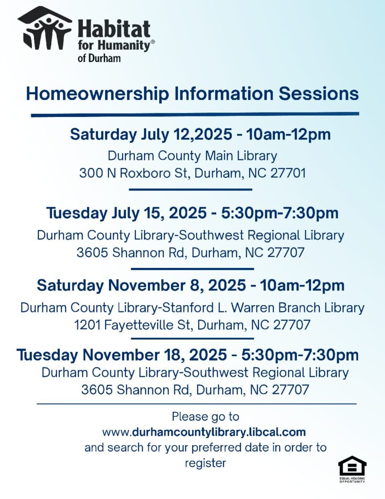 Durham Habitat for Humanity has closed its homeownership applications, effective January 11, 2025, after reaching capacity.
